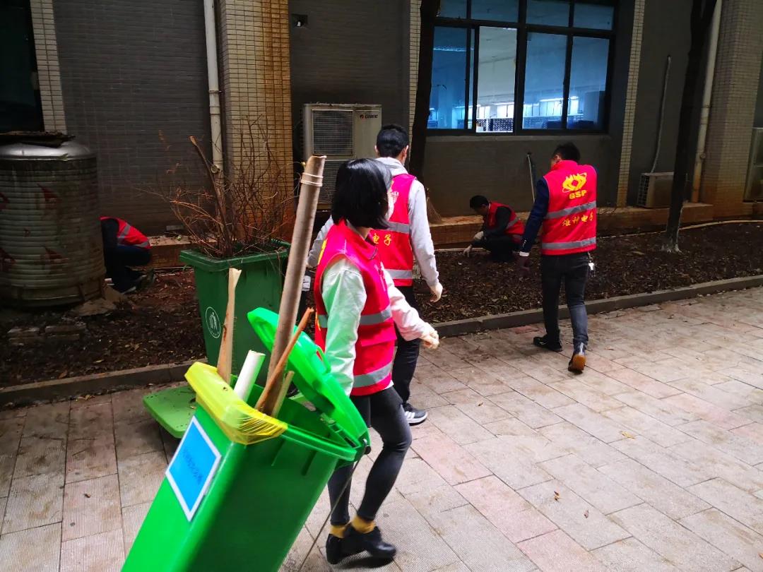 活動得到了郴州高新區機關第三黨支部的大力指導。炬神電子黨支部書記郭小雷身先士卒,帶領大家清掃道路垃圾、花壇枯枝敗葉,一派熱火朝天。